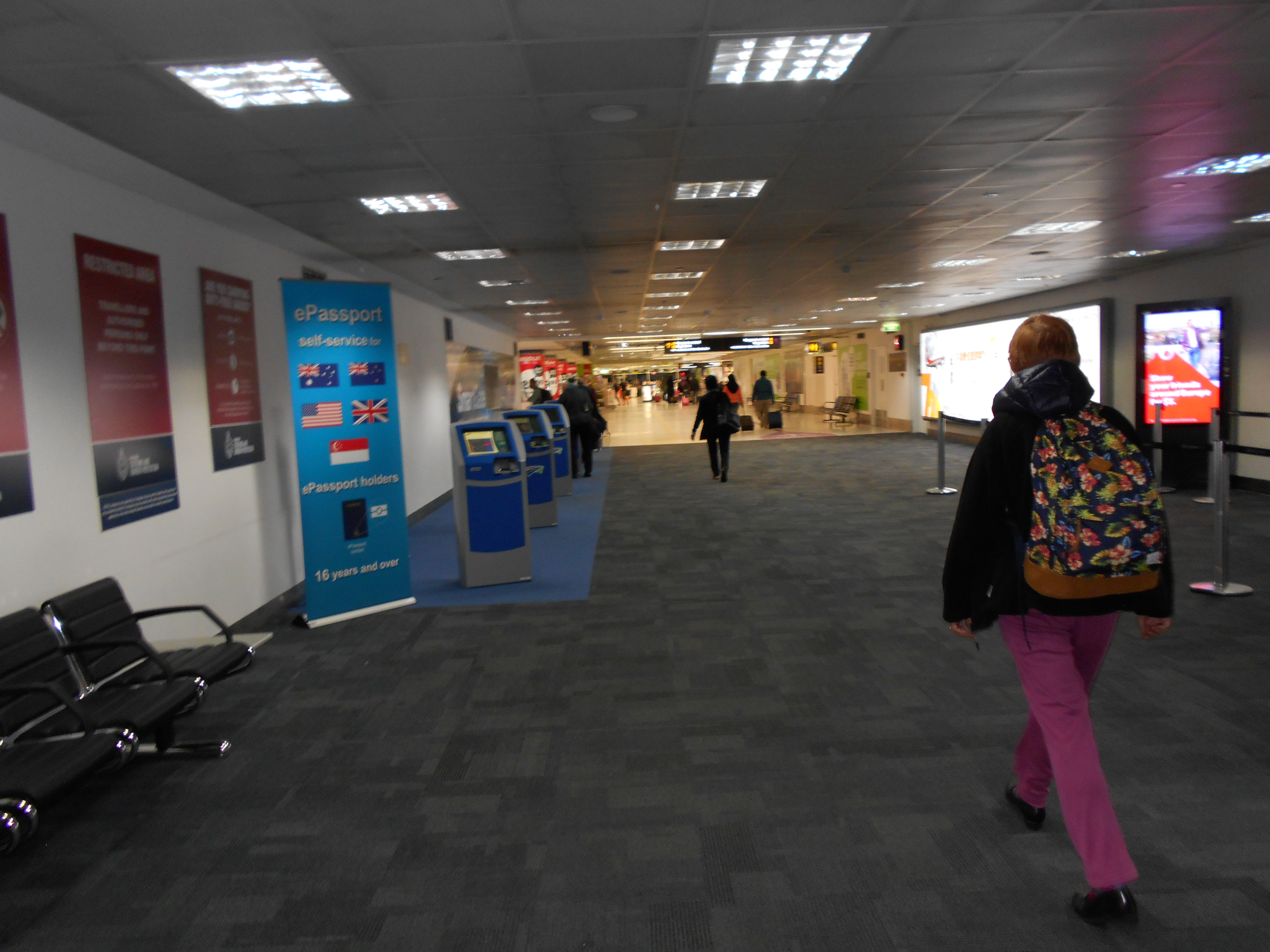 I said bye to Kelvin and off I went through the magic doors.  Security and immigration were no problem and I set off for Gate 22 which was approximately 1 kilometre away.  Fortunately there were some travelators and I only had a backpack to carry.  I was there in no time and sat down to wait for my plane to board.  I started reading my book and before long it was time to board.